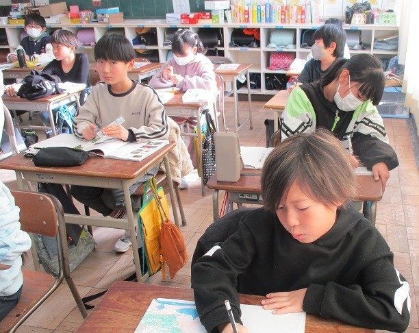 日間賀島に住む人々の暮らしを調べようというめあてで学習しました。タコの島・フグの島というイメージ観光を盛んにし、漁業は育てる漁業に変化してきたことが分かりました。