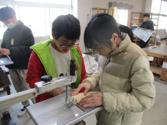 1年生のペアの子から頼まれていた手形を作ったり、版画を刷ったり、電動糸のこぎりでテ―プカッターを作ったり…