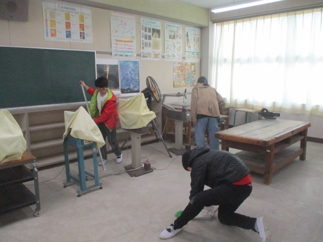 今日の授業で、図工室で活動するのも最後になりそうということで、授業の終わりにお世話になった図工室をみんなできれいに掃除しました!!