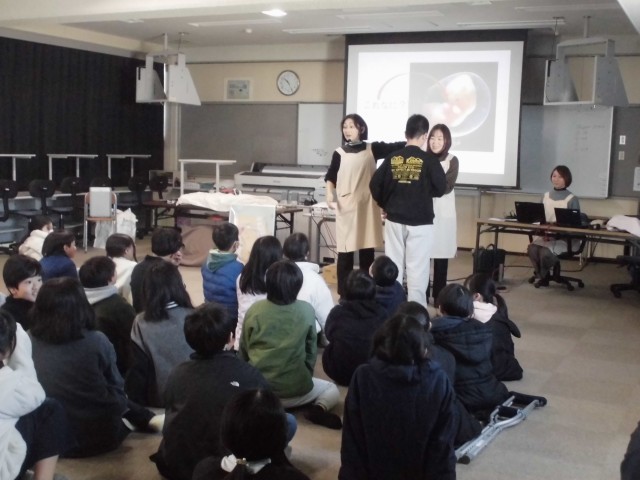 学校保健委員会として、「生」教育助産師グループOHANAさんをお招きし、「命の授業」を行いました。児童は、胎内で自分たちがどのように成長してきたのかを学ぶことを通じて、命の尊さについて学びました。一つ目の写真は、児童の鼓動と胎児の鼓動を聞き比べ、いかに胎児であった自分たちが懸命に成長してきたのかを学んでいる様子です。