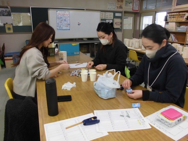 PTA環境委員会を中心に、ただいまベルマーク活動を行っています。各ご家庭で集めていただいたベルマークの集計作業中です。