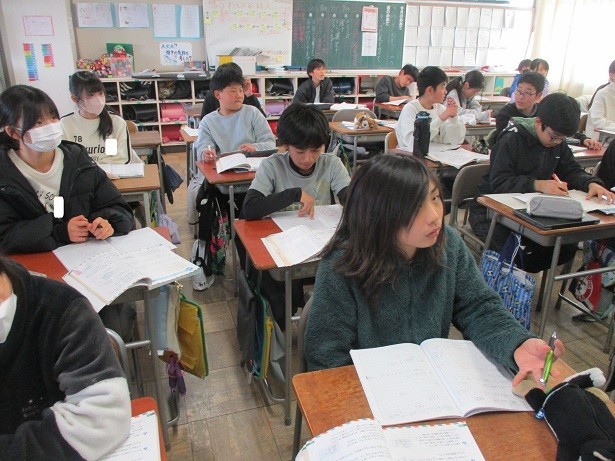 数と式の問題に取り組みました。値引きした値段で1.5kgのジャガイモを購入したが、このジャガイモのもとの1㎏あたりの値段を求める問題を全員が理解できるように話し合いに取り組みました。