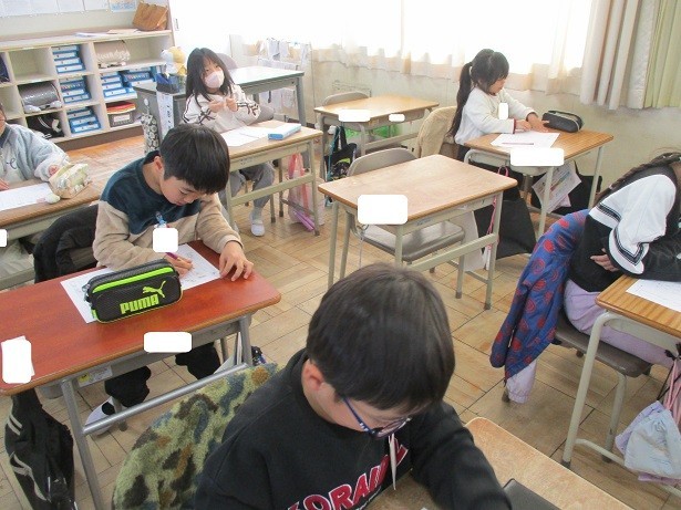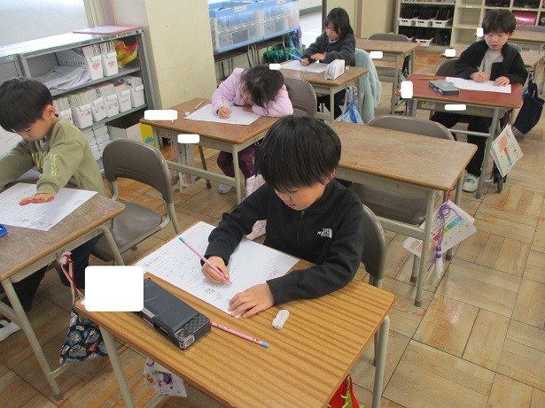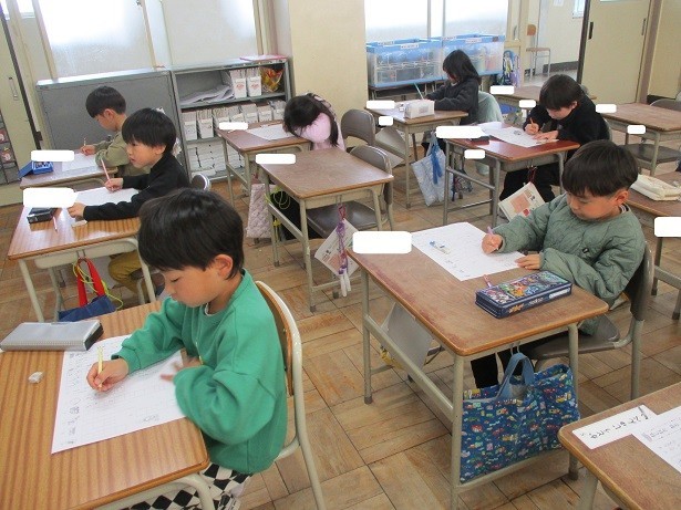 拗音の正しい書き方をワークシートを使って練習しました。枠の正しい位置に丁寧に書くことができました。とても真剣に書く姿に感心しました。