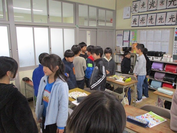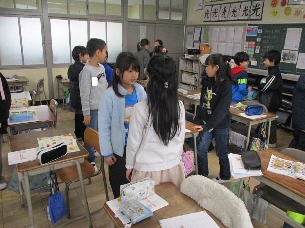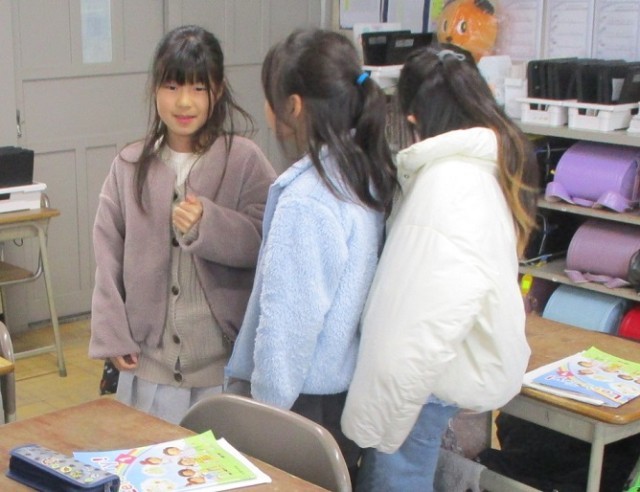 What ~ do you like? という表現を使って、相手の好みの色や果物などについて尋ねる活動をしました。尋ねられた児童も上手に答えることができました。