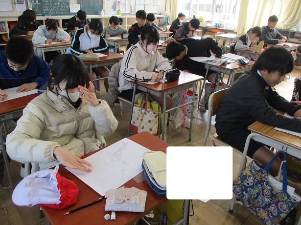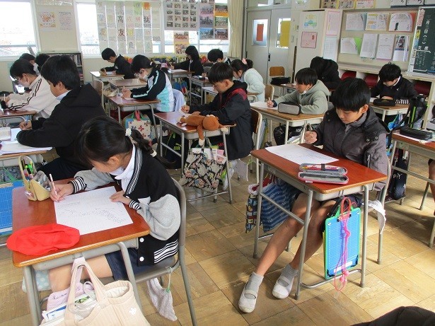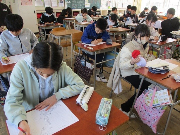 4年生で学習した都道府県名のワークシートに取り組みました。繰り返し練習して覚えたはずですが、いくつかの県については思い出すことができない様子も見られました。