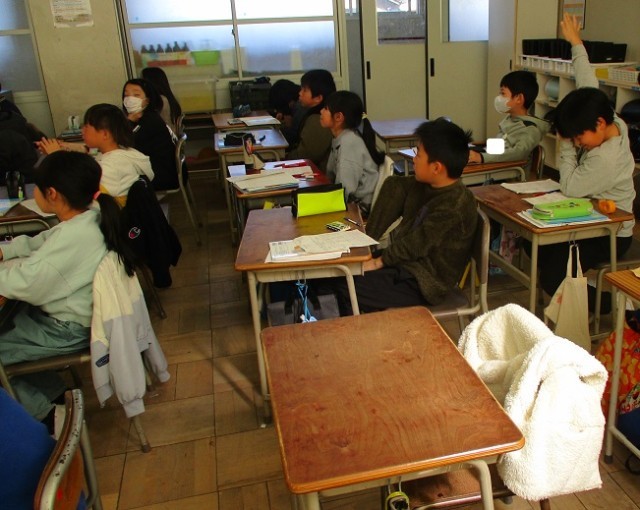 1年間の学習内容の復習に取り組んでいます。今日は分数の復習で、分数の足し算ひき算と等しい分数について取り組みました。