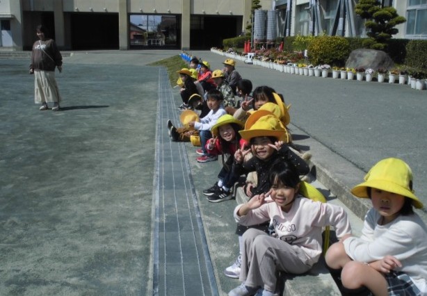学年合同で泥ケーをしました。つかまっている人たちにカメラを向けると、元気にピース!楽しそうですね。