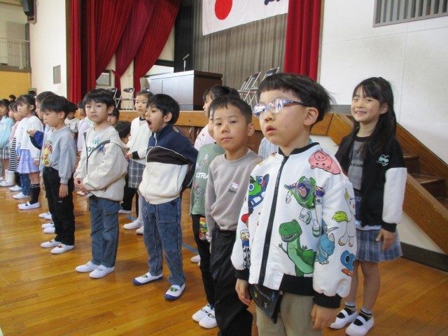昨日元気に入学してくれた1年生は、今日始業式に参加しました。対面式では、元気に挨拶をすることができました。明日からは給食が始まります。頑張りましょう!