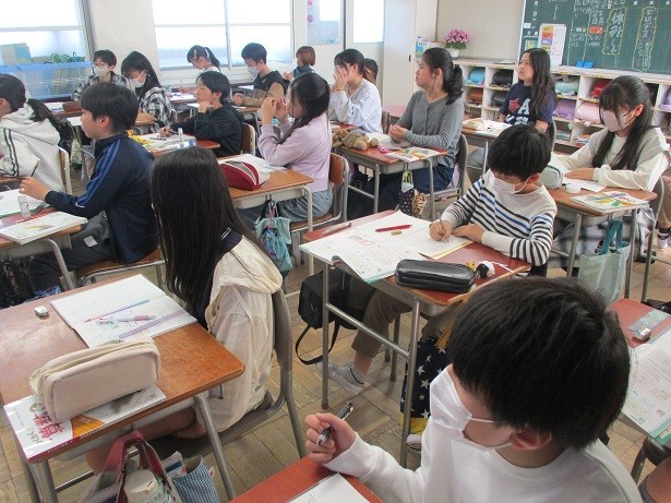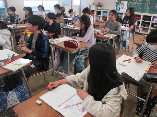 対称の軸で追ったときに重なる点や線、画について調べようというめあてで学習しました。対応する線の答え方については丁寧に確認しました。