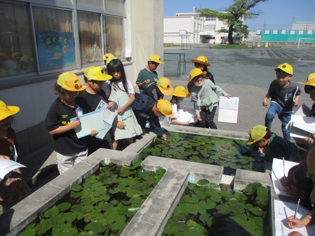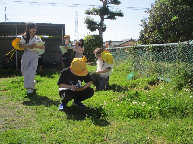 3年生では、初めて理科の授業が行われます。記念すべき1時間目は運動場のまわりにある畑や花壇や池で、生き物を探しに行きました。いろいろ見つけては理科ノートに一生懸命書き込んでいました。