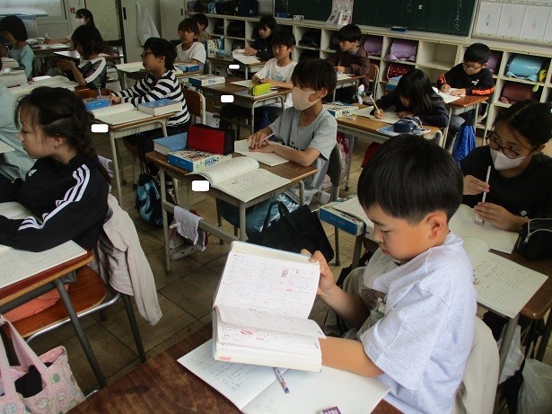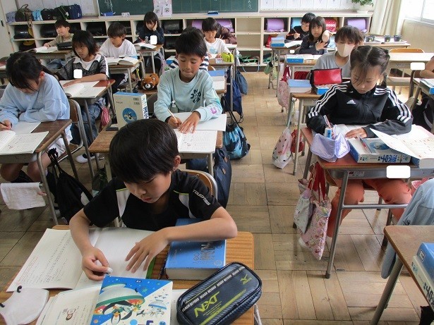 漢字辞典を使おうというめあてで学習しました。写、曲、発、起、陽、遊の6文字について、総画索引や音訓索引を使って調べました。