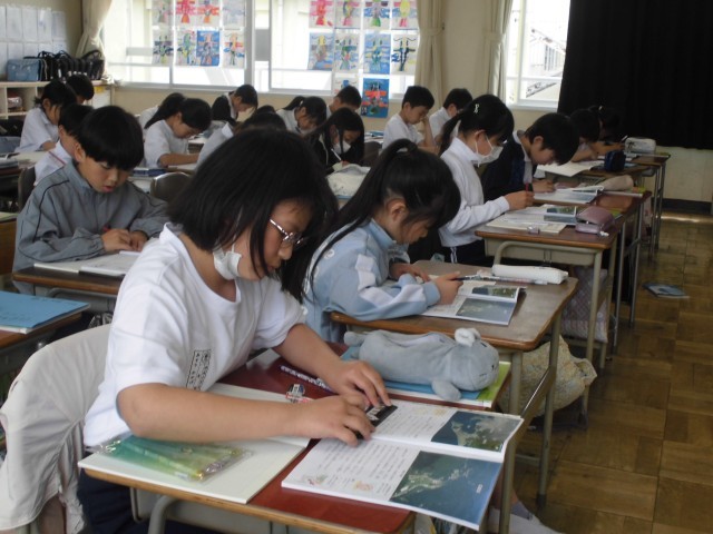 社会の学習では、愛知県の地形の名称について確かめを行っていました。道徳では、ネットリテラシーについての学習を行いました。