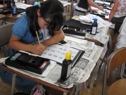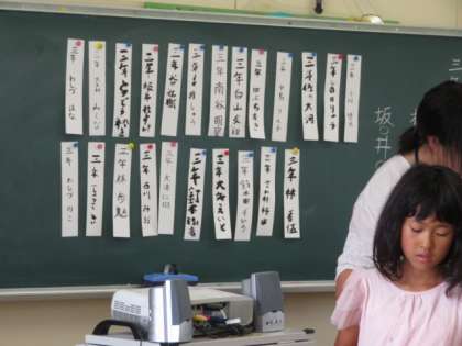 小筆の練習をしています。自分の名前を丁寧に書きました。意外に難しかったですが頑張りました。