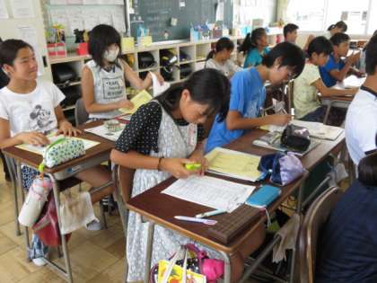 夏休みの計画を立てています。ポスター、習字等から何に取り組もうか夏の課題を考えて決めていきます。