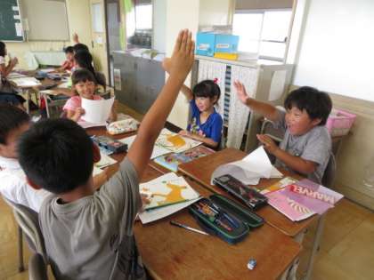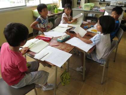 国語で読み取った内容をもとにクイズを作ります。お友達どうしでクイズを出し合ってとても楽しそうでした。