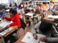 エアコン工事のため、今日はふれあいホールで勉強しました。暑さに負けず、汗を拭き拭きがんばりました。これからの夏休みも、元気に過ごしてください。いろいろなお話を楽しみにしています。