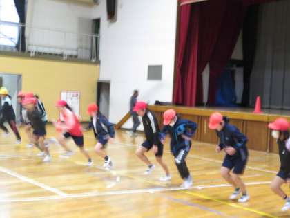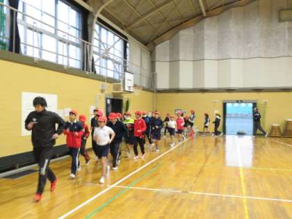 本日よりロードレース部の練習が始まりました。今日は、雨天のため、屋内運動場で体力つくりの運動を行いました。いい汗を流し、気持ちのよいスタートを切ることができました。本番2月11日のロードレース大会に向けて、頑張っていきます!