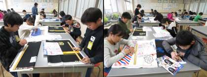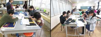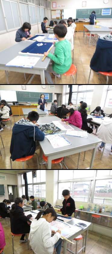 家庭科でエプロンの製作が始まりました。今日は長さを決め、印をつけ、切っていきました。これからが楽しみです。