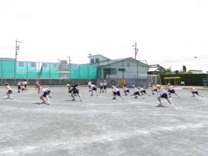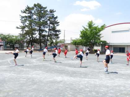 応援団の練習です。動きが揃い、全体の迫力が増してきました。団長を中心にまとまって練習しています。