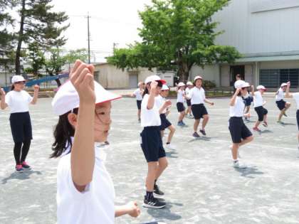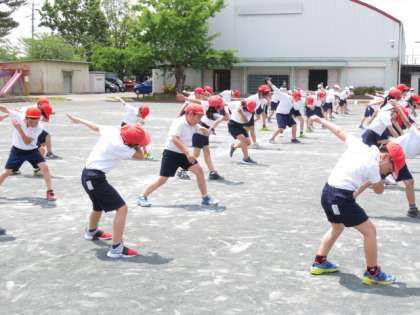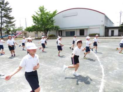 表現運動の練習を隊形移動を踏まえながら、練習しました。掛け声もかけ元気よく楽しく運動できました。