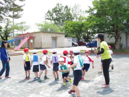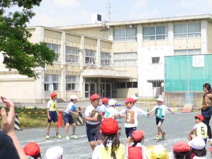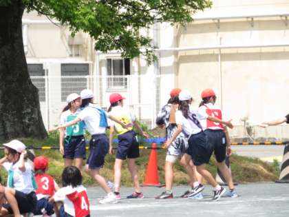 運動会に向けて紅白リレーの練習を行っています。うまくバトンができるように練習しました。