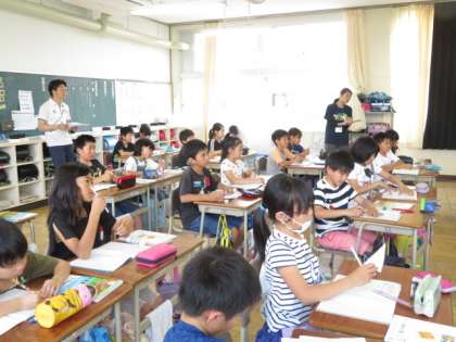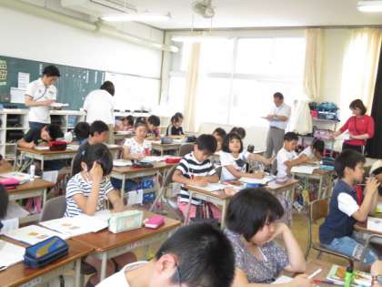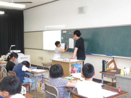 算数の授業研究を4年生1組で行いました。(3桁)÷(1桁)の割り算を子どもたちにわかりやすく教える授業法の研究です。どう発問したらよいか、どんな指示がよいか、子どもたちができるようになる授業法を実際に授業を行って研究していきます