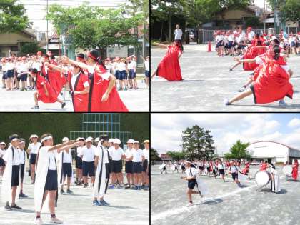 運動会の全校練習で応援の練習をしました。応援団の声が響きわたりました。