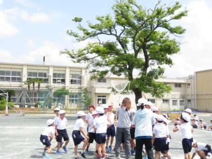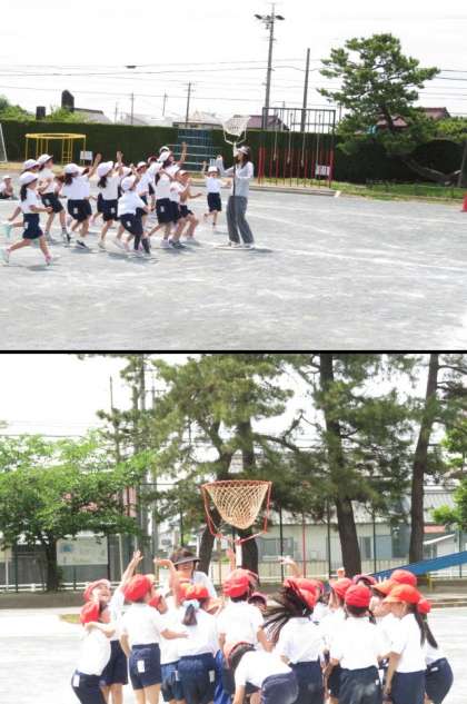 今日は初めて玉入れの練習をしました。号令でどんな動きをするかを理解して投げる練習をしました。