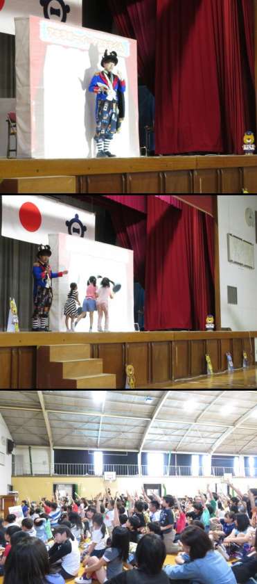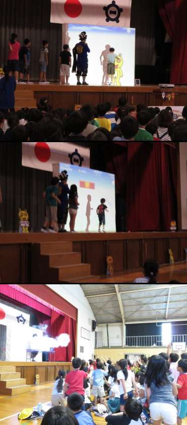 子ども福祉週間の行事として、一宮市児童育成協議会の皆さんが「アキラボーイとタヌキチくんのデジタルショー」を開催してくださいました。デジタルコンテンツと一緒にひっぱりあっこをしたり、サッカーをしたりと楽しい時間を過ごしました。また、大人のかたも参加し大いに盛り上がりました。最後は不思議なデジタル空気砲の出現に驚きました。子ども会の皆様、役員の皆様、地域の皆様素晴らしい時間をありがとうございました。