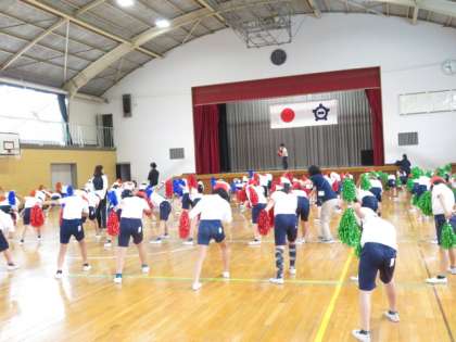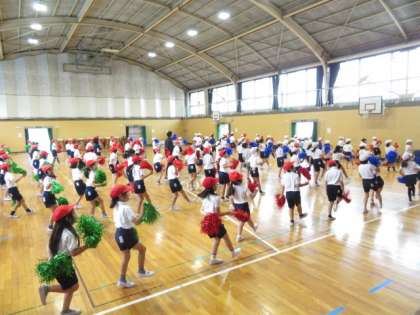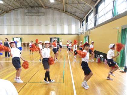 表現運動の練習で、今日はポンポンを持って行いました。動きを確認しながらリズムにのって楽しくダンスをすることができました。