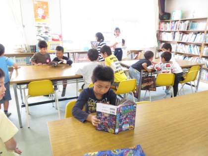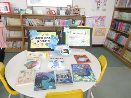 中間放課に図書館へ皆さんが本を借りにきました。図書館には雨の季節に相応しい本も紹介されています。図書委員さんもしっかり仕事をしてくれています。これからも図書館でたくさん本を借りて本の世界に浸ってください。