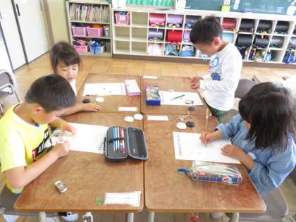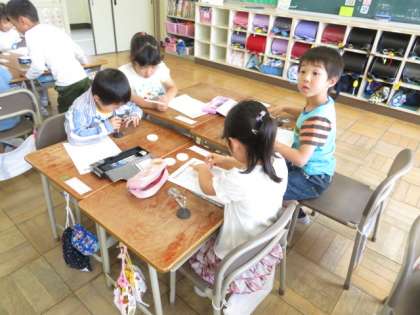 生活科で今度植える種の観察をしました。ホウセンカ・ヒマワリ・あさがお・マリーゴールドの種の観察をしました。「博士みたいだね」と嬉しそうに観察しました。