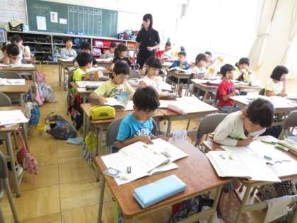 国語で「かんさつ名人になろう」という学習をしています。植物の観察の記録の取り方を学習しました。大きさや伸び方の記録には、こんな言葉を使うといいんだねということがよく分かりました。