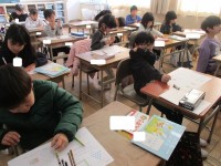 国語で「これはなあに」を学習しています。友だちが出した問題に答えていきます。「運動場にあるものです」「赤い色です」などのヒントから考えます。正解すると歓声があがりました。