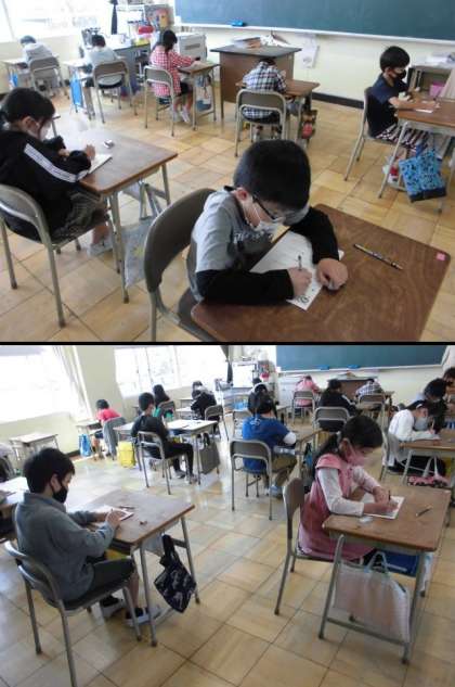 朝の「きらわくタイム」で、漢字の学習に真剣に取り組んでいます。全問正解を目指して頑張っています。