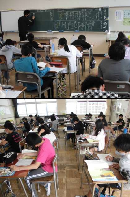 国語では、「二人の登場人物の心情の変化を読み取ろう」です。本文を読み込み、プリントに自分の考えを書き込んでいきます。