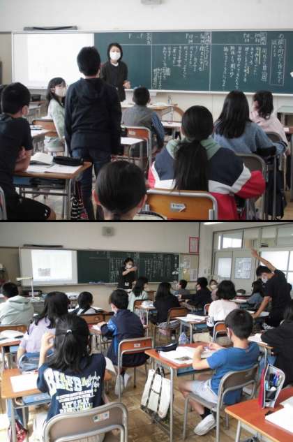 また、二人の登場人物の心情の変化をとらえたら、自分の考えとして発表します。級友の意見を聞いては、さらに新たな考えを発表し合います。活発な意見交換でができていますね。