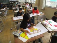 隣のクラスでは、「なぞなぞをつくろう」です。「かたつむり」が答えになる、なぞなぞの問題文を一文で短く書きます。「殻をもっています」「雨の日によく見ます」「ゆっくりと動きます」などが出ました。