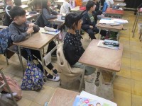 図工は、読書感想画を描きます。今日の目標は下書きの完成です。先生の点検を受けた人は、色塗りの準備です。「宇宙人がいた」というお話なので、それぞれが思い思いのいろいろな宇宙人を描いていますね。