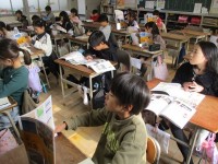 道徳は、「黄金の魚」を題材にして、「度をこした行動をしないようにするために、大切なこと」について学びます。登場人物のおばあさんの気持ちの変化を考えています。自分の考えをみんなに発表しています。