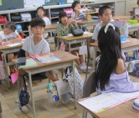 算数は、「表とグラフ」の単元テストに取り組んでいます。授業で学んだことをよく思い出して、グラフを描いたり、表を見て問題に答えたりしています。みんな集中して、一生懸命に頑張っていますね。えらいよ3年生!