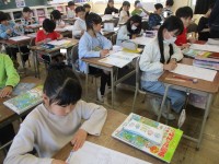 算数は、「2÷4の計算のしかたを考えよう」です。練習問題をいくつも解いて、しっかりと計算の仕方が身につくように、みんな頑張っています。繰り返しの復習が、大切ですからね。