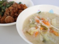 今日の献立は、ごはん・牛乳・てりどり・かぼちゃのみそ汁です。