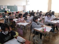 音楽は、リコーダー演奏に取り組んでいます。「拍の流れにのって歌うように演奏しよう」です。曲は、「風とケーナのロマンス」です。先生と子どもたちと交互に演奏しながら、曲想や特徴をとらえていきます。