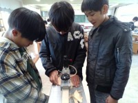 理科は、「火山について調べよう」です。火山灰や火山岩の標本を、グループになって観察をしています。観察して気づいたことを、各自で理科ノートにまとめていきます。