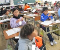 算数は、「小数のかけ算・わり算」の単元テストに取り組んでいます。筆算で行う計算問題や文章題など、両面にしっかりと出題されています。計算ミスをしないように、見直しをしながら最後まで頑張って解いていきましょう。