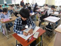 社会科は、「日本は今、どのような変化の中にいて、どんな問題を抱えているのか」というテーマです。現代社会における問題点を、教科書や資料集をもとに出していきます。不景気、人口減少、少子高齢化、環境問題、災害大国などがあげられました。
