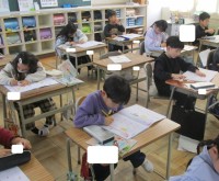2学期になり、給食の盛り付けも自分たちでしています。最初は、量が違ったり、こぼしてしまったりしていましたが、だんだん慣れてきて、速く正確に盛り付けられるようになってきました。
