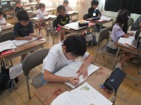 紙版画を制作しました。表現したい部分に会う素材を選び、丁寧に切り取り、台紙に貼り付けました。モールやひもなどもうまく生かすことができました。