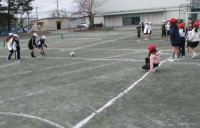 クラスの男女で早く整列できると座るというルールで集合をしたら、とても早くきちんと列を整えて整列することができました。先生とじゃんけんをして鬼を決めて鬼ごっこをスタートしました。とても元気に活動することができました。